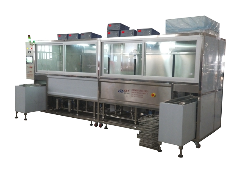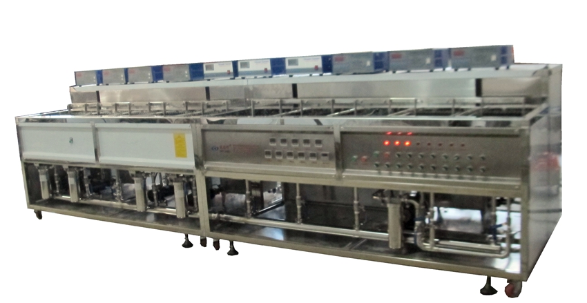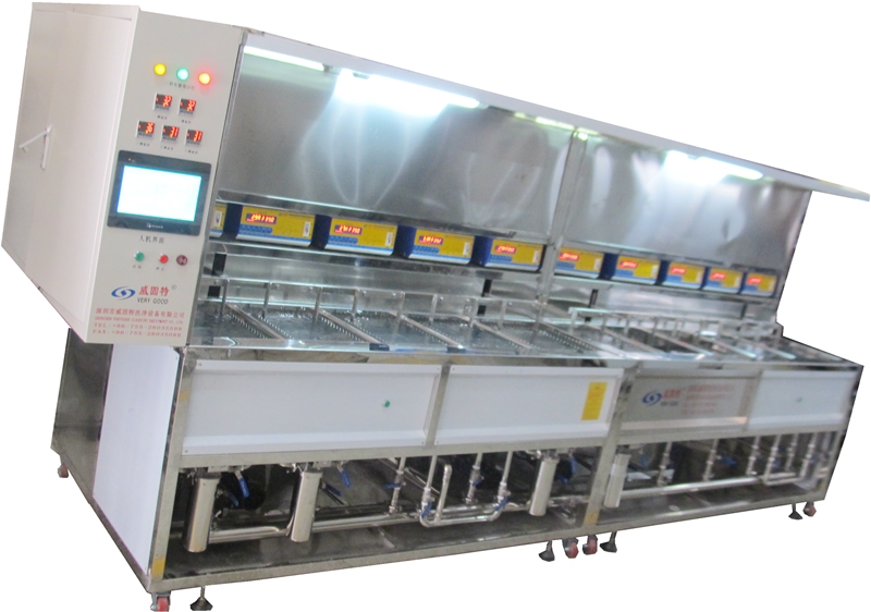 VGT-1109FS十一槽光學玻璃超聲波清洗機設備共有11個功能槽,配置有循環過濾系統、有機溶劑蒸餾回收系統、自動恒溫系統、慢拉系統、拋動系統、超聲波清洗系統、抽風裝置等組成。
